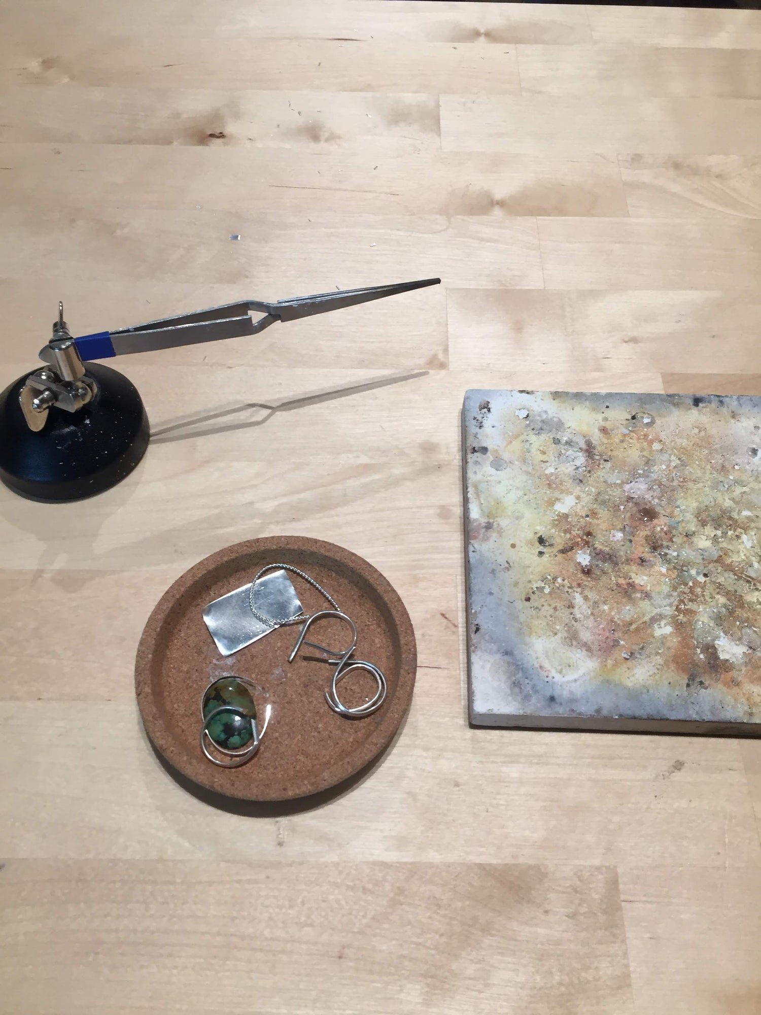 Next you will choose your custom bezel and band options from our selection of metals - Fine silver and .925 silver. Our team will help you get setup at your work station, introduce you to your tools and get you ready to craft your masterpiece!